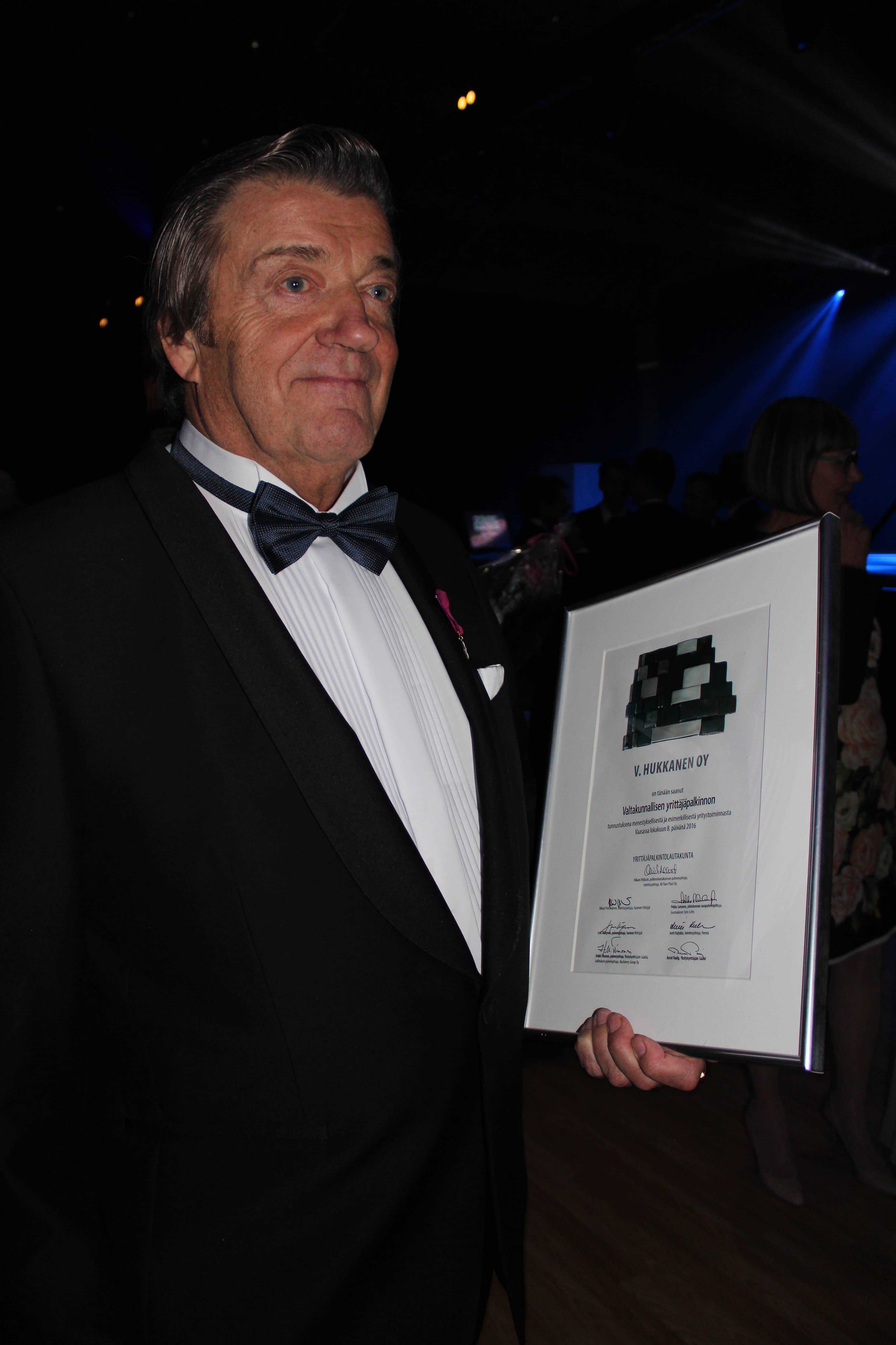 Veijo ja Ulpu Hukkanen ovat saaneet valtakunnallisen vuoden yrittäjäpalkinnon, juhlagaalassa Valtakunnallisilla yrittäjäpäivillä Vaasassa 8. lokakuuta 2016. Veijon ja Ulpun yli 40 vuotta jatkunut yrittäjätaival on näin saanut suurimman suomalaisen yrittäjille osoitettavan huomionosoituksen.
